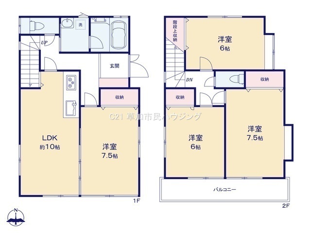 駅徒歩14分、駐車2台可(車種による)、内装リフォーム済、全居室収納・6帖以上、ワイドバルコニー、小学校徒歩10分以内