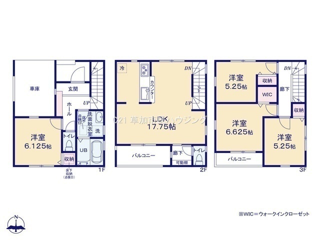 南向き、ビルトイン車庫、LDK17帖超、リビングイン階段、対面キッチン、WIC、南面バルコニー×2