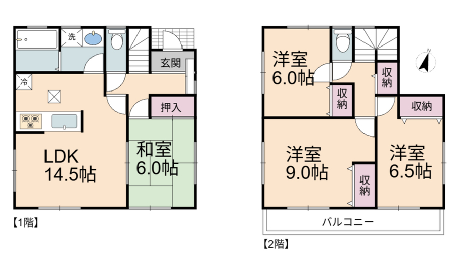 全居室6帖以上の広さと2面採光で明るく開放的◎