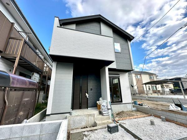 玄関スペースが広くスムーズに出入りができます。シンプルな外観デザインが印象的です。軒がしっかりしており雨の日も安心して利用できます。光の入り方が明るく清潔感のある印象を与えます。