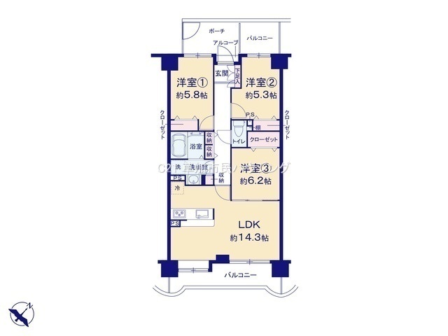 南東向き、陽当り良好、内装リフォーム、対面キッチン、浴室乾燥機、収納充実、ワイドバルコニー、2面バルコニー、専用ポーチ