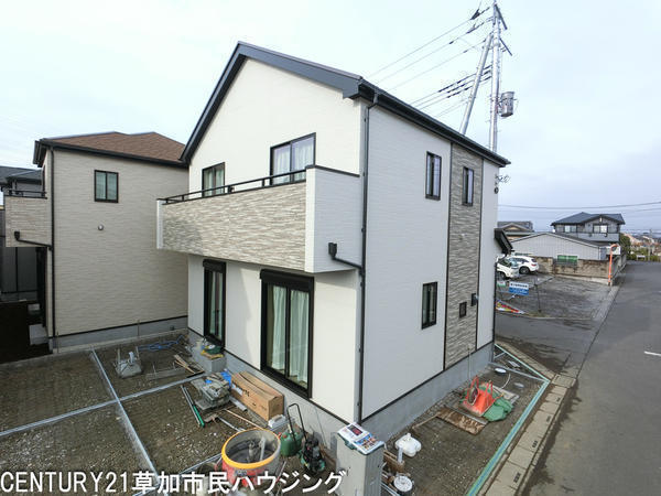 角地に立地し開放感のある外観が特徴的です。シンプルな色合いで現代的なデザインが魅力です。窓の配置がバランス良く光が差し込みやすい設計となっています。道路に面しているためアクセスも便利です。
