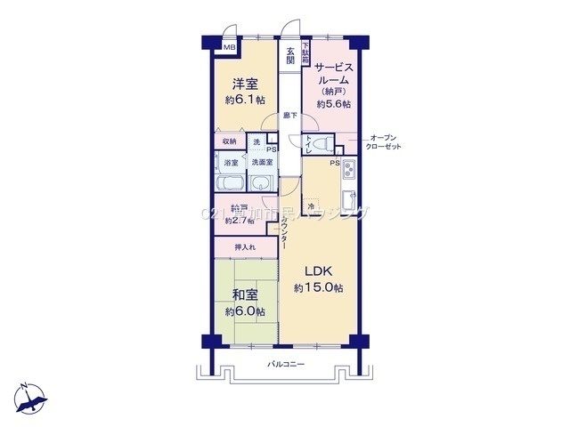 駅徒歩15分、南向きで陽当り・眺望・通風良好、新規内装リフォーム、LDK15帖、全居室収納有、納戸×2、南向きワイドバルコニー