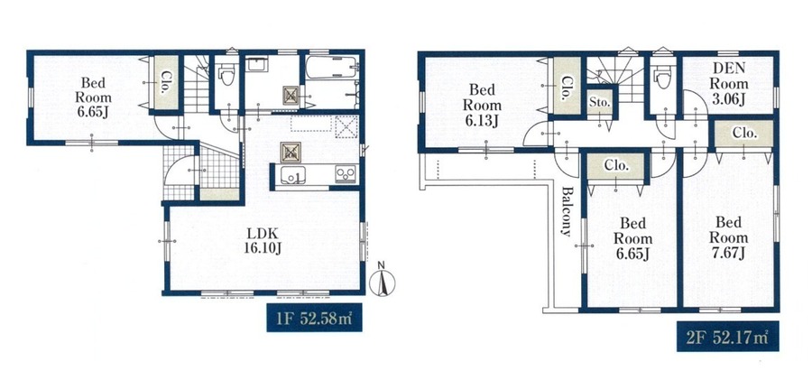 1階と2階にベッドルームが複数ありさまざまな使い方ができる間取りです。ゆったりとしたLDKが特徴的で動線もスムーズです。各部屋に収納スペースが設けられており収納力も魅力的です。