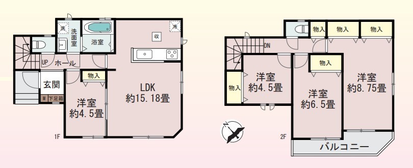 南道路、駐車2台可(車種による)、LDK15帖以上、カウンターキッチン、全居室収納、ワイドバルコニー、主寝室8帖以上、小中学校徒歩6分圏内