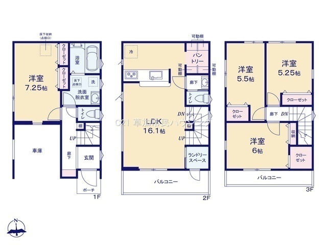 駅徒歩14分、南向き、LDK16帖超、対面キッチン、リビングイン階段、パントリー、ランドリースペース、全居室収納、ビルトイン車庫、南面バルコニー×2