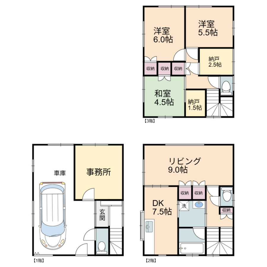 1階部分は事務所利用も可能で、店舗や在宅ワークスペースとしても活用できます。