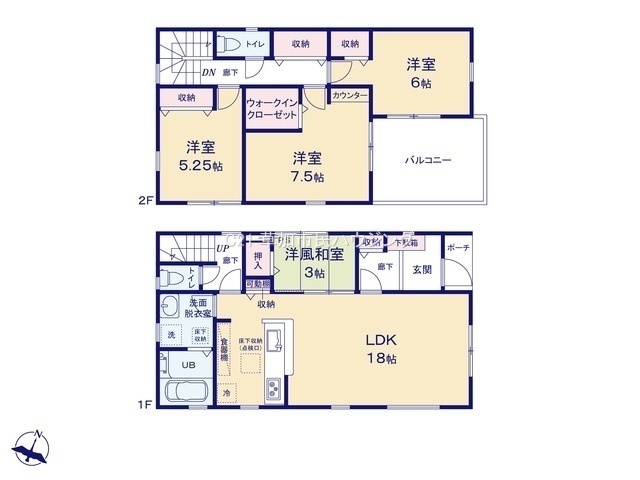 全3棟、並列駐車2台可(車種による)、LDK18帖、対面キッチン、水廻り集中設計、全居室収納、WIC、南面バルコニー、長期優良住宅、BELS住宅