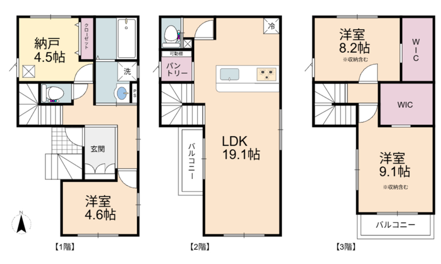 たっぷり収納できるWIC2ヶ所や、食品や日用品を整理できるパントリーも完備!