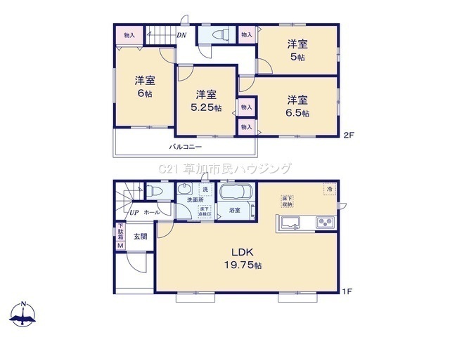 家具を置いてもゆとりのある広々LDK19帖超に、会話が弾む開放的な対面キッチンや、家事効率を高める水廻り集中設計など、毎日の暮らしを快適にサポート♪