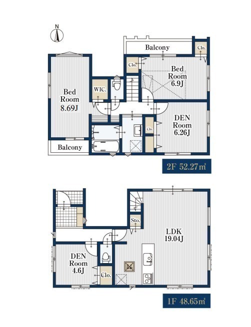 駅徒歩13分、駐車2台可(車種による)、LDK19帖超、対面キッチン、エコジョーズ、主寝室8帖以上、リビングイン階段、全居室収納、WIC、納戸×2、2面バルコニー、小学校徒歩2分圏内