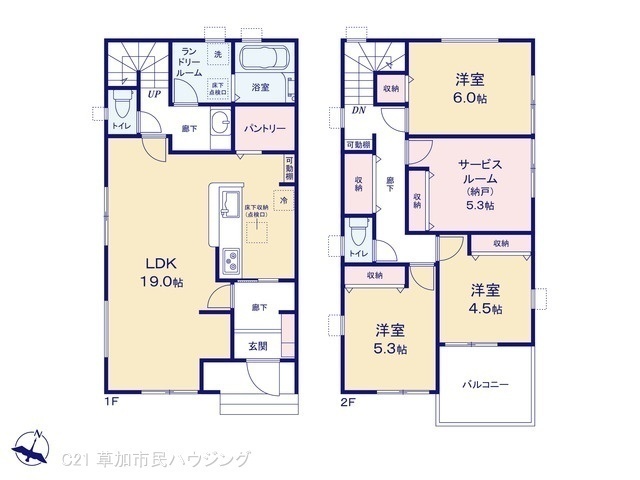 全4棟、南道路にて陽当り良好、LDK19帖、対面キッチン、パントリー有、全居室収納、南面バルコニー、小学校徒歩6分