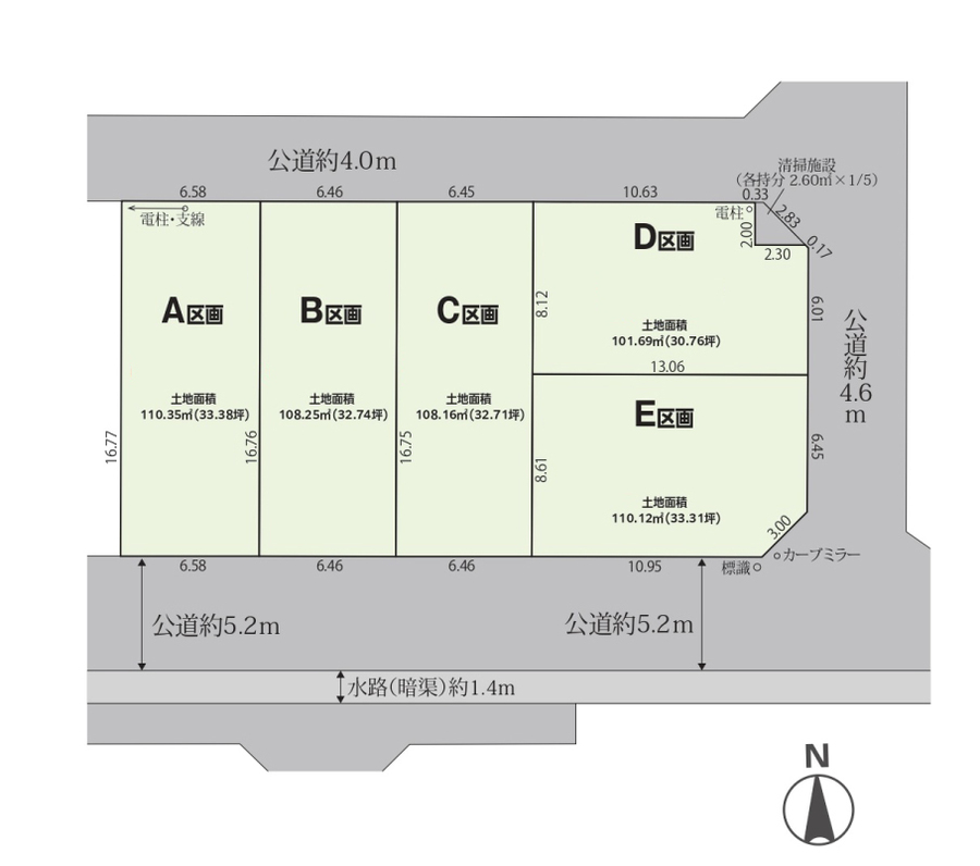 全5区画、2駅利用可、南北両面道路、整形地、小学校徒歩3分、都市ガス・本下水、建築条件無し・お好きなハウスメーカーで建築可