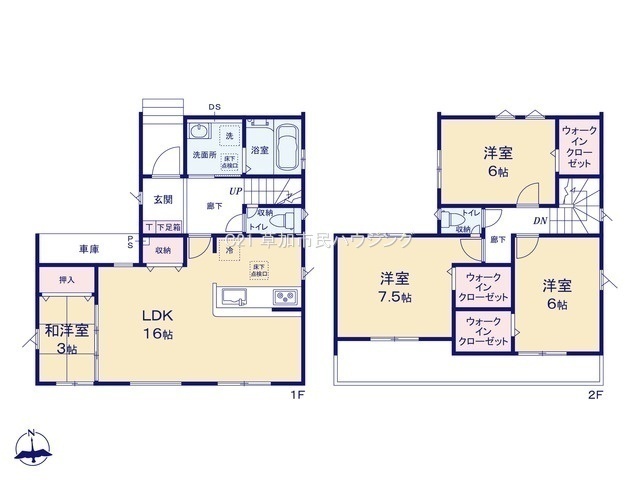 南向き、LDK16帖、対面キッチン、主寝室7.5帖、全居室収納有、WIC×3、南面ワイドバルコニー