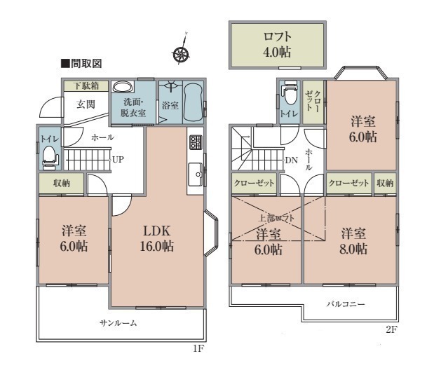 内装リフォーム、LDK16帖、全居室6帖以上、全居室収納、主寝室8帖、ロフト、サンルーム、ワイドバルコニー、小中学校徒歩6分圏内