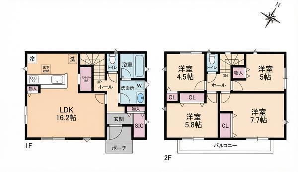 各部屋がバランスよく配置された暮らしやすさ重視の便利な間取りです。全居室に収納が確保されており、お家全体がいつでもスッキリ片付きます!