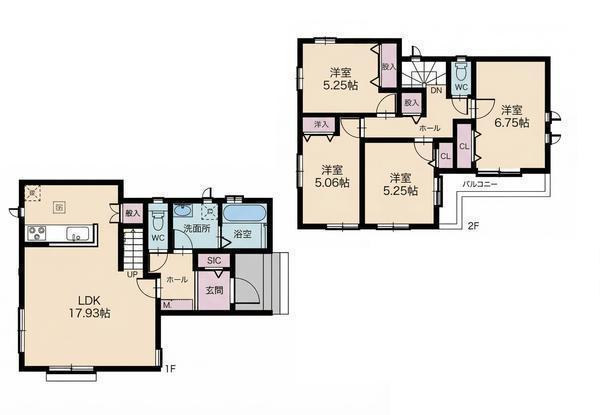 広々としたリビングと複数の洋室が配置された間取りです。二階にはバルコニーもありさまざまな用途に便利です。設備も整った造りで快適な空間が広がります。玄関にはSICがあり収納スペースも確保されています。
