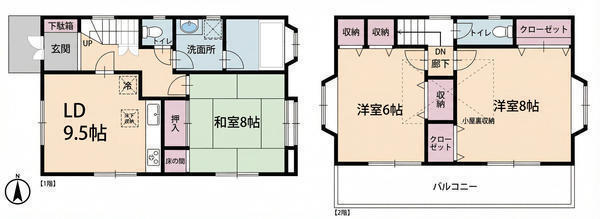 フローリング システムキッチン トイレ2ヶ所 洗面化粧台 オートバス シューズボックス 全居室収納 屋根裏収納 床下収納 バルコニー 日当り良好 ガス:都市ガス コンロ:ガス、三口 汚水:公共下水(使用可) 水道:公営水道(使用可)