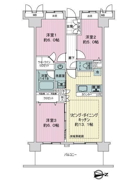 駅徒歩5分、ペット可(細則有)、新規内装リノベーション、対面キッチン、LD床暖房、全居室収納有、WIC、ワイドバルコニー、周辺商業施設充実