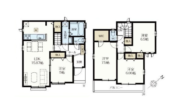 全7棟、南東道路、土地38坪以上、駐車2台可、LDK15帖以上、対面キッチン、全居室収納有、WIC、ワイドバルコニー、長期優良住宅