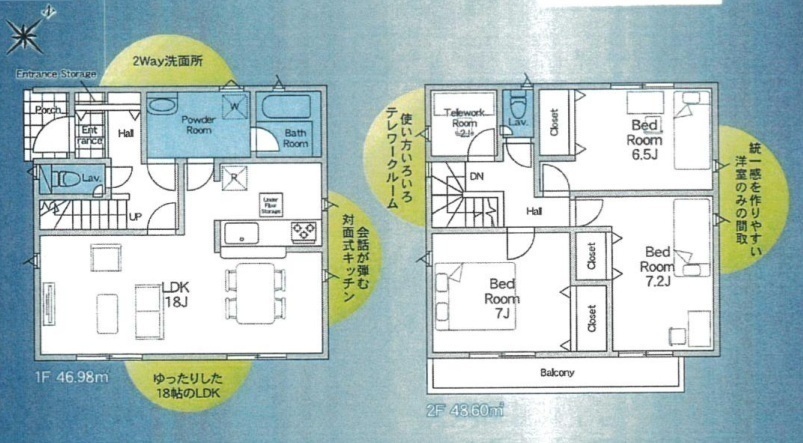 角地、駐車2台可(車種による)、、LDK18帖、対面キッチン、水廻り集中設計、全居室収納有、防犯カメラ、ワイドバルコニー、小学校徒歩7分以内
