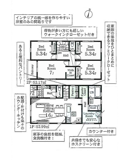 全4棟、南西道路、土地41坪以上、駐車並列2台可、LDK16帖、対面キッチン、食洗機、パントリー、全居室収納有、WIC、ファミリークローゼット、長期優良住宅、BELS住宅