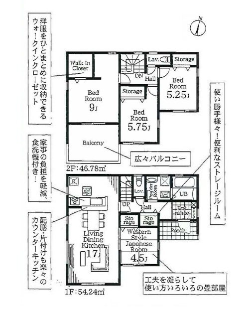 全4棟、角地、土地44坪超、駐車並列2台可、LDK17帖、対面キッチン、食洗機、主寝室9帖、全室南向き、全居室収納有、WIC、長期優良住宅、BELS住宅