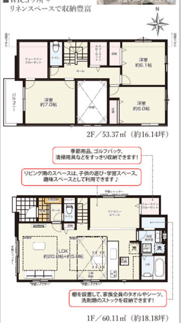 全3棟、土地43坪以上、並列駐車2台可(車種による)、リビングイン階段、LDK25帖、床暖房、WIC×3、電動シャッター、食洗機、全居室6帖以上