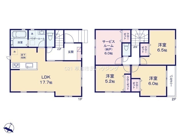LDK17帖以上、カウンターキッチン、水廻り集中設計、全居室収納有、サービスルーム、近隣商業施設充実