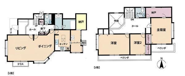 2駅2路線利用可、土地61坪超、南西角地、床暖房、TVドアフォン、カーポート付、大型納戸付、小中学校徒歩6分圏内