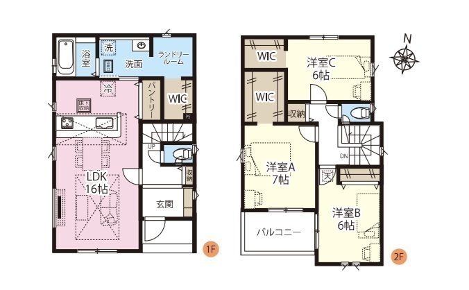 全5棟、南道路、土地39坪以上、駐車並列2台可、LDK16帖、対面キッチン、主寝室7帖、全居室収納有・6帖以上、WIC×3、パントリー、ランドリールーム、南面バルコニー、ZEH水準仕様、長期優良住宅