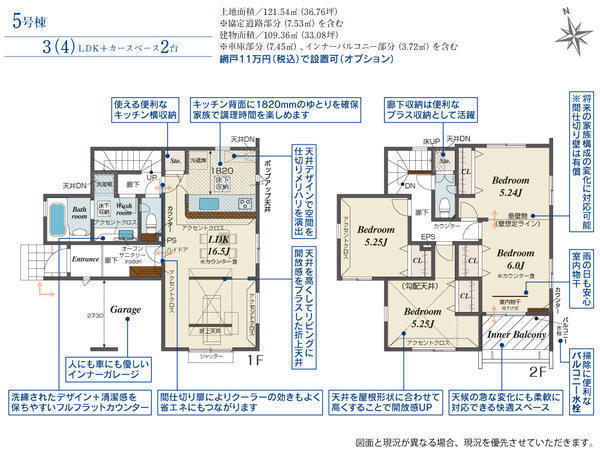 全8棟、土地36坪以上、駐車2台可、4LDK可変型、LDK16.5帖、対面キッチン、食洗機、主寝室11帖以上、全居室収納、室内物干、太陽光パネル、インナーバルコニー、長期優良住宅、BELS住宅