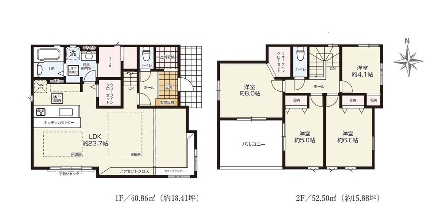 駅徒歩15分、駐車並列3台可、LDK23帖以上、LD床暖房、対面キッチン、食洗機、エコジョーズ、主寝室8帖、リネン庫、土間収納、WIC×2、全居室収納有、南面バルコニー