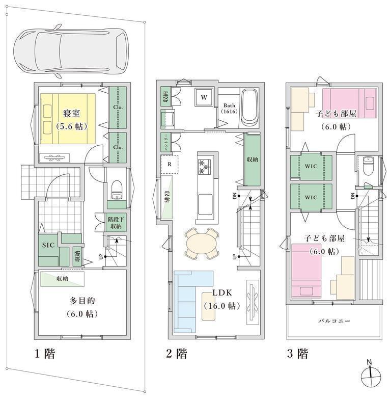 南西角地、LDK16帖、アイランドキッチン、全居室収納有、WIC×2、SIC、南面バルコニー、周辺買物施設充実